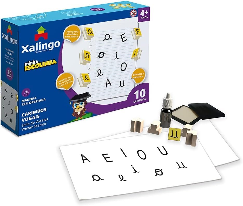 Produto educativo e divertido: CARIMBOS VOGAIS - MINHA ESCOLINHA. Desenvolve habilidades cognitivas, criatividade e aprendizado de forma l?dica. Ideal para crian?as e momentos em fam?lia.