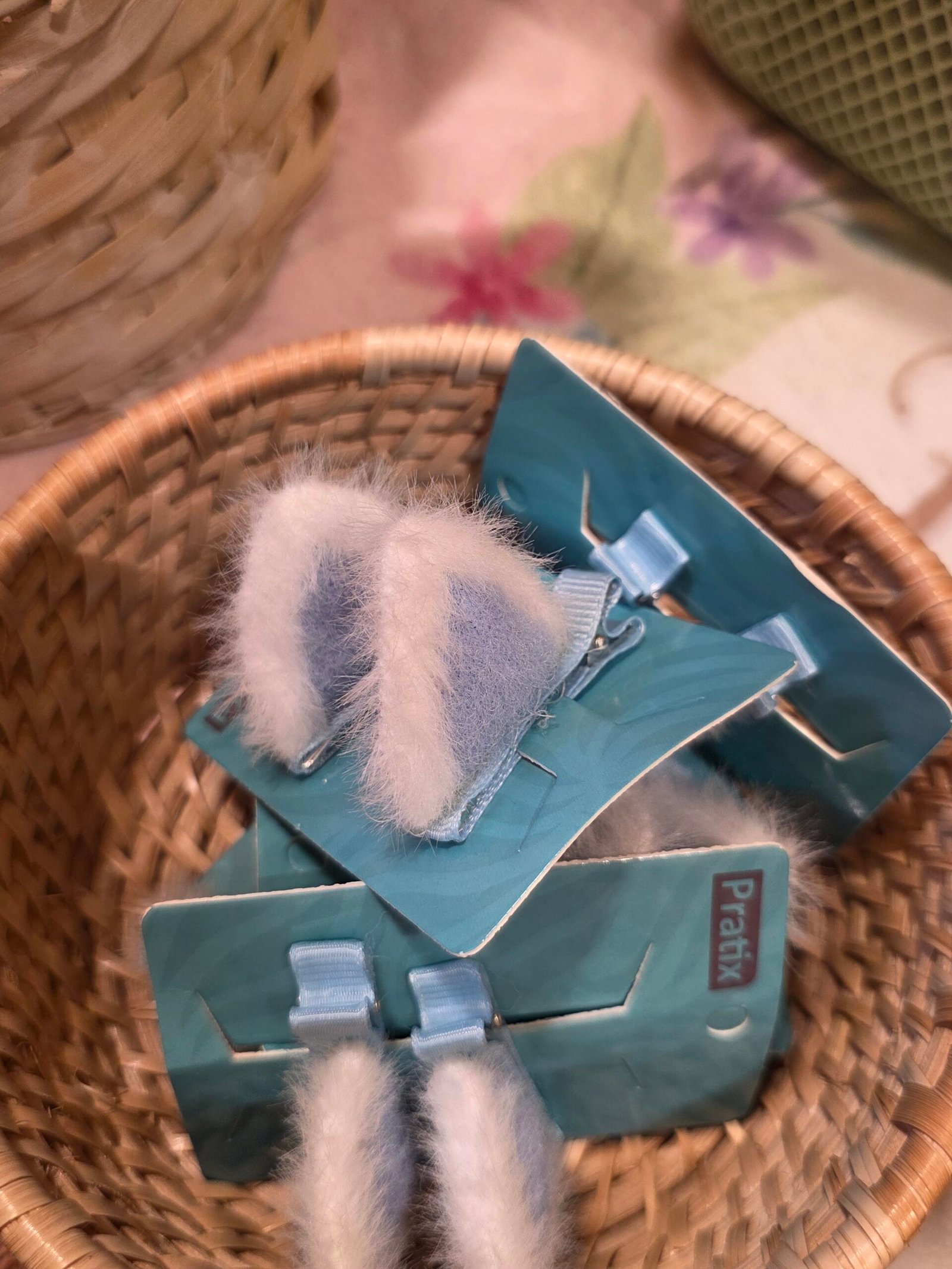 PARES DE PRENDEDORES DE METAL C/ORELHA DE PELUCIA P/CABELOS F306