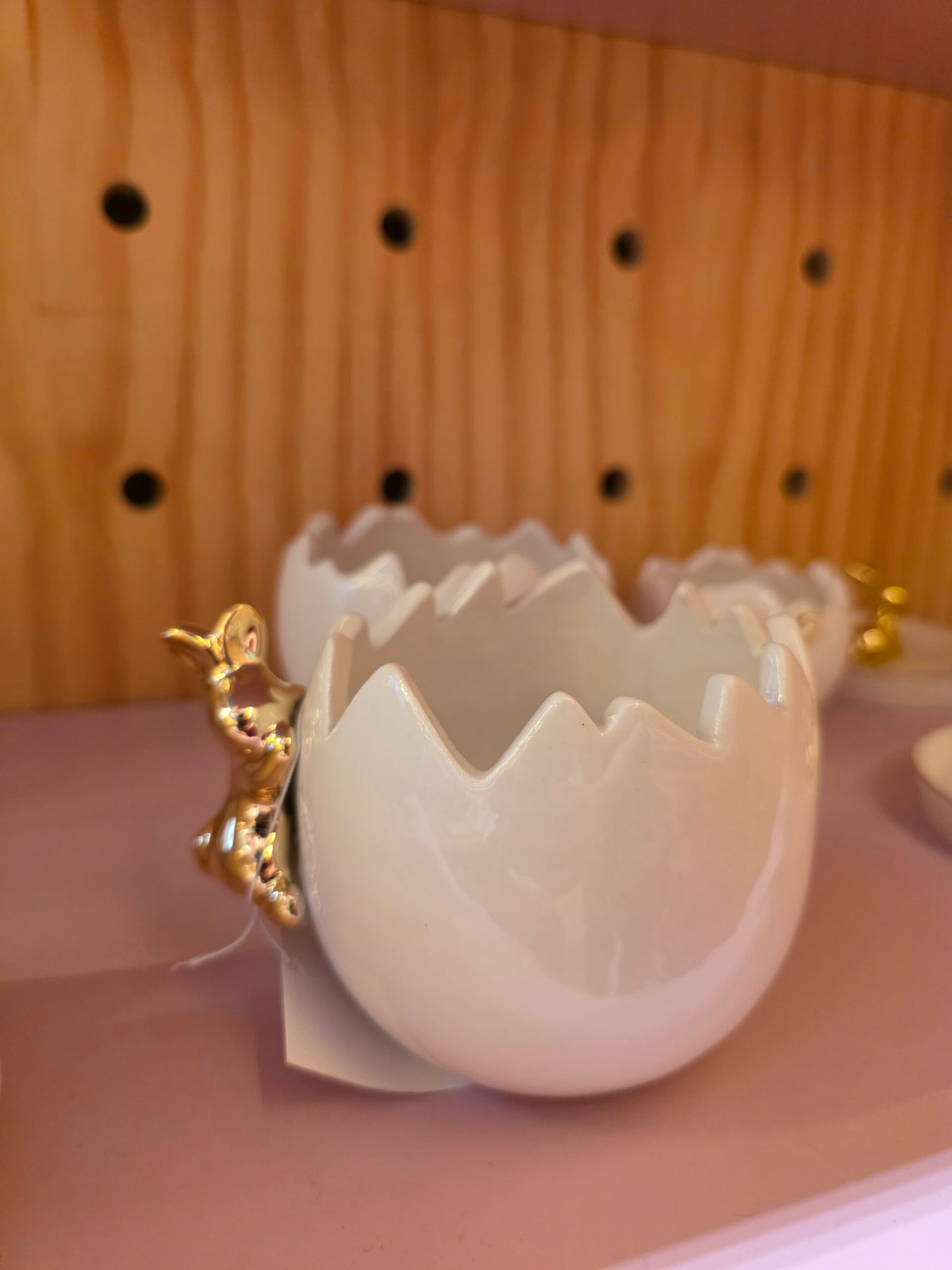 Um bowl em formato de casca de ovo com coelhinho dourado que transforma qualquer cantinho em cen?rio de P?scoa. Perfeito para colocar chocolates, doces ou pequenos objetos e deixar a decora??o cheia de charme.