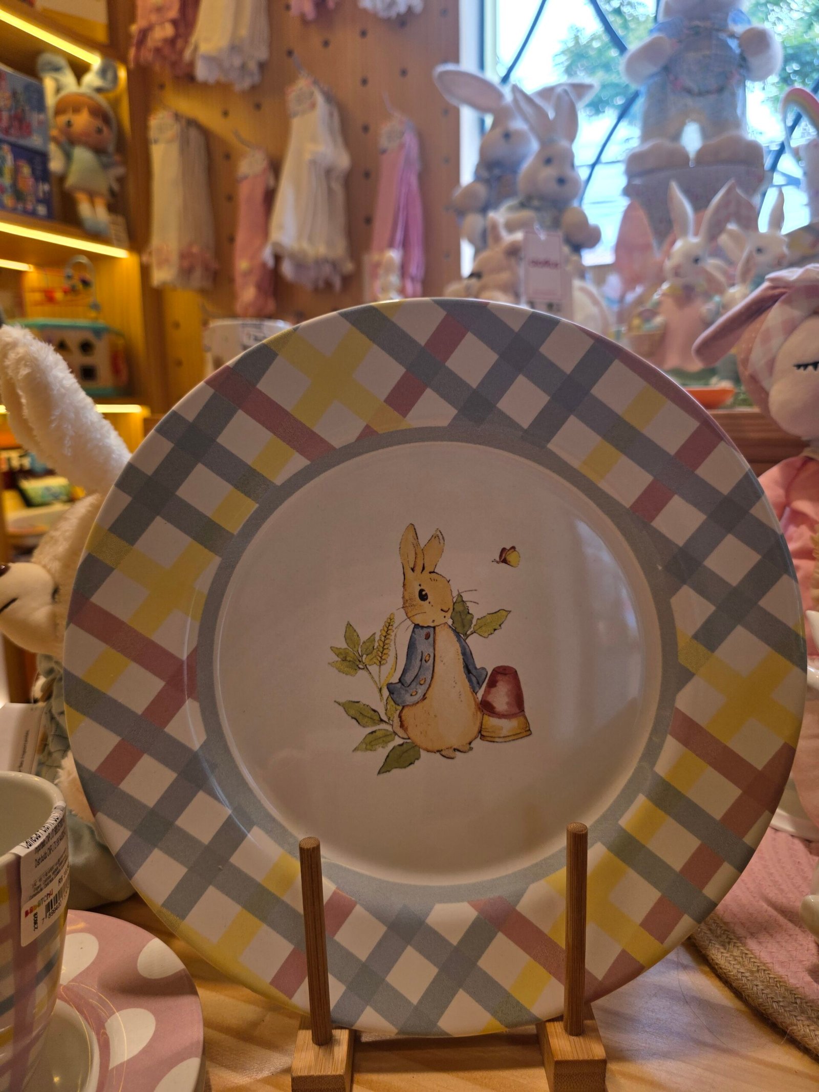 O cl?ssico coelhinho Peter Rabbit aparece em um cen?rio delicado com estampa xadrez colorida. Um prato infantil encantador que transforma a hora da refei??o em um momento mais alegre e especial para a crian?a.
